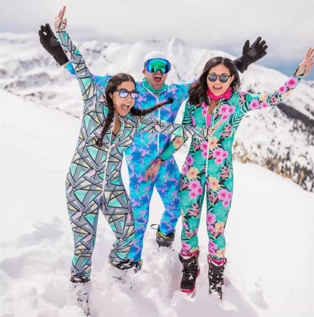 這靈感難道來自兒童游泳池的皮球或是奶奶家的花床單?實(shí)在想不懂他們在滑雪的時(shí)候喜歡穿成五顏六色。話說一開始在滑雪服上運(yùn)用鮮艷的顏色,是因?yàn)樵诎籽┌}皚的世界里,撞色強(qiáng)烈的色彩搭配可以讓滑雪者突出,提升滑雪樂趣。但是也不至于這樣隨意的顏色搭配吧,只能說之前的滑雪服設(shè)計(jì)審美落后得讓人發(fā)指。