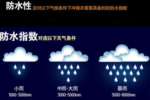 所謂防水,是指無論你是坐在潮濕的地方,抑或是身處于風(fēng)雨交加的環(huán)境中,它都能夠快速而又有效地阻擋雨水和霜雪的入侵,使水無法滲透入衣服內(nèi)讓你感到潮濕和寒冷;所謂透氣,是指當(dāng)你進行大運動量的戶外運動時,身體自然流汗,皮膚呼出大量濕氣,如果不能在短時間內(nèi)排出體外,必然會導(dǎo)致汗氣困在身體和衣服之間,令人感覺渾身濕透,在陰雨天氣下,更加潮濕、寒冷。