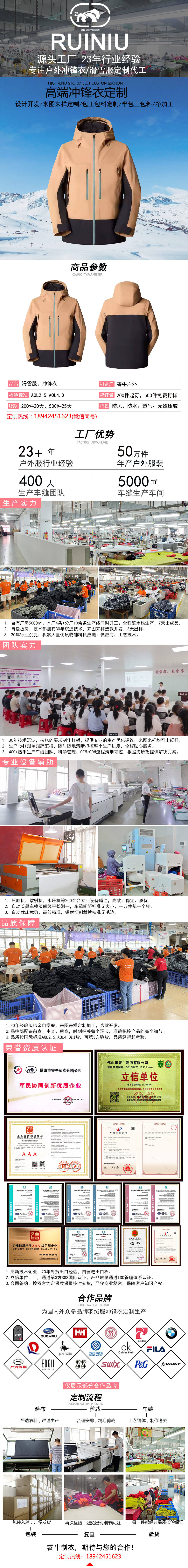 沖鋒衣工廠來圖來樣定制加工硬殼沖鋒衣