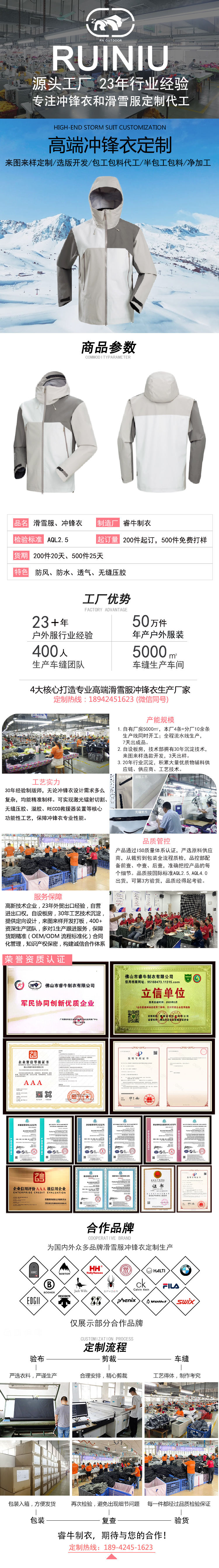 持續(xù)23年專注沖鋒衣、滑雪服定制加工廠家