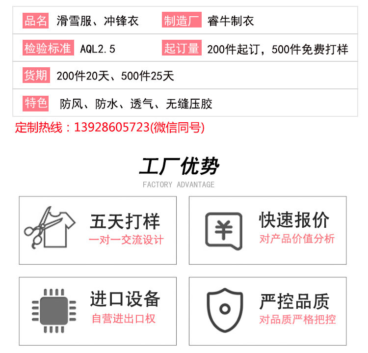 持續(xù)23年專注沖鋒衣、滑雪服定制加工廠家