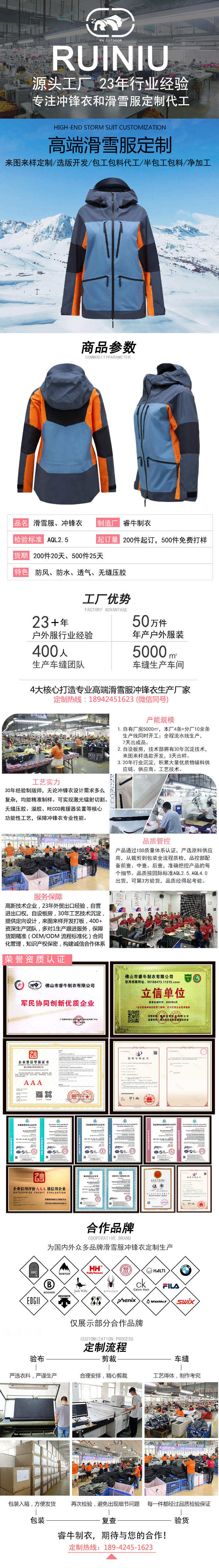 持續23年專注沖鋒衣、滑雪服定制加工廠家