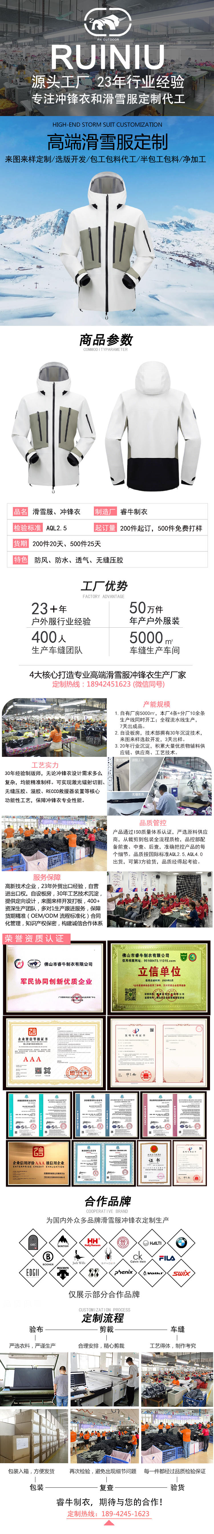 持續23年專注沖鋒衣、滑雪服定制加工廠家