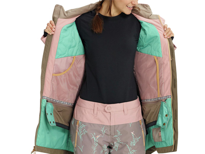 大口袋:滑雪服前幅大口袋,容納物品足,口袋開啟是拉鏈和暗扣雙結合。