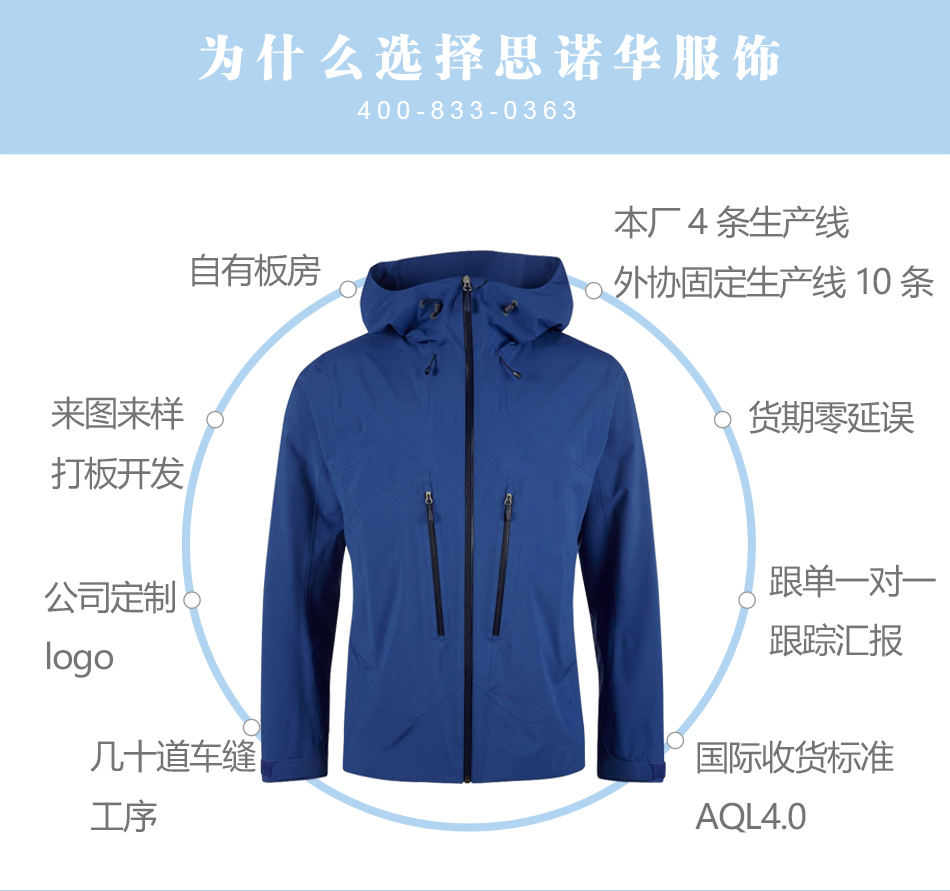 防水拉鏈:防水滑雪服定制高質量YKK防水拉鏈,可承受數萬次拉合,可根據客戶要求特殊定制。